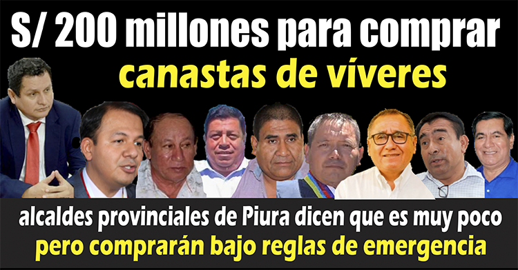 El Ejecutivo transferirá una partida de 200 millones de soles a las municipalidades provinciales y distritales del país para que adquieran y distribuyan artículos de primera necesidad a las familias vulnerables en condición de pobreza y extrema pobreza, en el marco del estado de emergencia y aislamiento domiciliario dispuesto para contener la propagación del coronavirus en el país. Es una buena decisión para paliar en algo la precariedad alimentaria de la población más vulnerable de las ocho provincias y 65 distritos que tenemos…