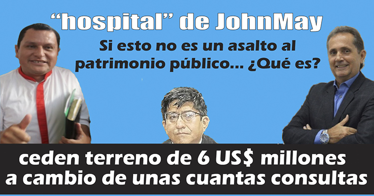 En este caso, nada de ello ocurrió o hicieron en el gobierno regional… ¿Ignorancia? Creemos que no y que más bien, con el fin de apropiarse delictivamente del patrimonio público y la finalidad de enriquecerse con la enfermedad y sufrimiento de los piuranos, el Gobernador SERVANDO GARCÍA, su gerente general JESÚS TORRES SARAVIA, la secretaria general de la gobernación MARITZA LORENA DEL ROSARIO MOGOLLON PEÑA, el asesor jurídico de entonces JOSÉ ANTONIO ÁLVAREZ LARA, el gerente regional de desarrollo social EDDY ANTHONY LEYVA VILLALONGA y el director de la DIRECCIÓN REGIONAL DE SALUD; firmaron en setiembre de 2019 este lesivo convenio en favor de la empresa JOHNMAY SALUD, nombre comercial de CONSORCIO POLICLÍNICO PIURA, creada apenas el 01 de julio de 2019 por JOHNY ULISES MAYTA PEÑA, amigo y quizá socio del asesor del gobernador FERNANDO LEONCIO CÁCERES ROSELL… Lo firmaron sin más y el convenio carece de los informes técnicos y legales que den sustento, el que obviamente no existe para semejante latrocionio y si que existen esos informes, tendrían que hacerlos públicos como público también de ser el convenio por el cual el alcalde de Veintiséis de Octubre DARWIN GARCÍA MARCHENA, entrega un valioso terreno, éste sí propiedad de su municipalidad, para que sea explotado con empresas ajenas a su jurisdicción sin cumplir las normas obligatorias para dicho fin.