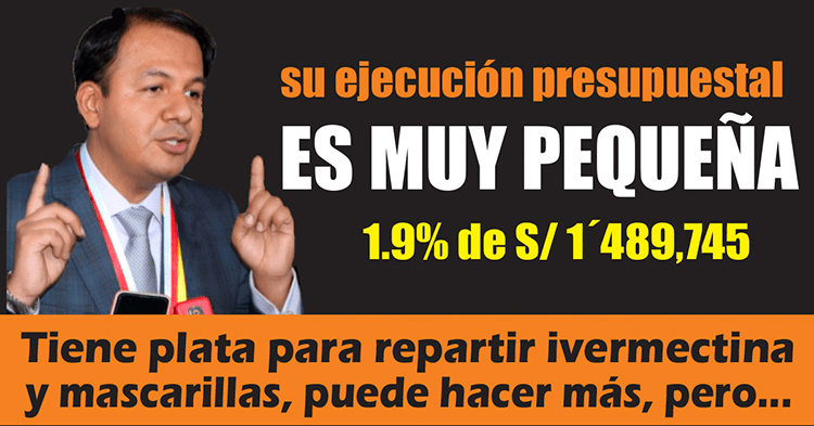 Según el economista piurano, el alcalde JUAN JOSÉ DÍAZ DIOS, sólo informa mediáticamente sobre las entregas de mascarillas y medicinas que reparte; sin embargo, es poco lo que se sabe de su ejecución presupuestal, puesto que en sus declaraciones no informa bien el monto de sus egresos. , sólo informa mediáticamente sobre las entregas de mascarillas y medicinas que reparte; sin embargo, es poco lo que se sabe de su ejecución presupuestal, puesto que en sus declaraciones no informa bien el monto de sus egresos. “No se tiene, por ejemplo, conocimiento de la adquisición de una planta productora de oxígeno (modular), tanque isotérmico, balones con oxígeno medicinal, máquinas respiradoras, camas UCI y otras compras de accesorios. No hay convenios con los hospitales del MINSA y EsSalud para dotarlos de medicinas y equipos”, señala.