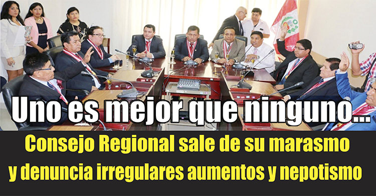 En casos como este, uno siempre será mejor que ninguno y con ello nos referimos a la actuación del Consejo Regional que siendo su función fundamental fiscalizar el accionar del ejecutivo regional, reiteradamente brilló por su inoperancia al dejar hacer y dejar pasar repetidas irregularidades en la gestión de SERVANDO GARCÍA… Pues bien, parece que ahora sí, el CONSEJO REGIONAL ha decidido cumplir con la función a la que está obligado y en relación al caso del irregular y exagerado incremento de sueldo y gastos de movilidad en el Hospital Santa Rosa, dispuso con 10 votos a favor y uno en contra, se habrán los correspondientes procesos disciplinarios a quienes creen que pueden hacer con el dinero público lo que les viene en gana; entre ellos, el director del hospital EDWIN CHINGUEL PASACHE, la jefa de asesoría jurídica EVELYN KARINA RIVERA SAGÁSTEGUI, la jefa de administración GLADYS SILVANA SALAZAR ZAPATA, entre otros funcionarios…
