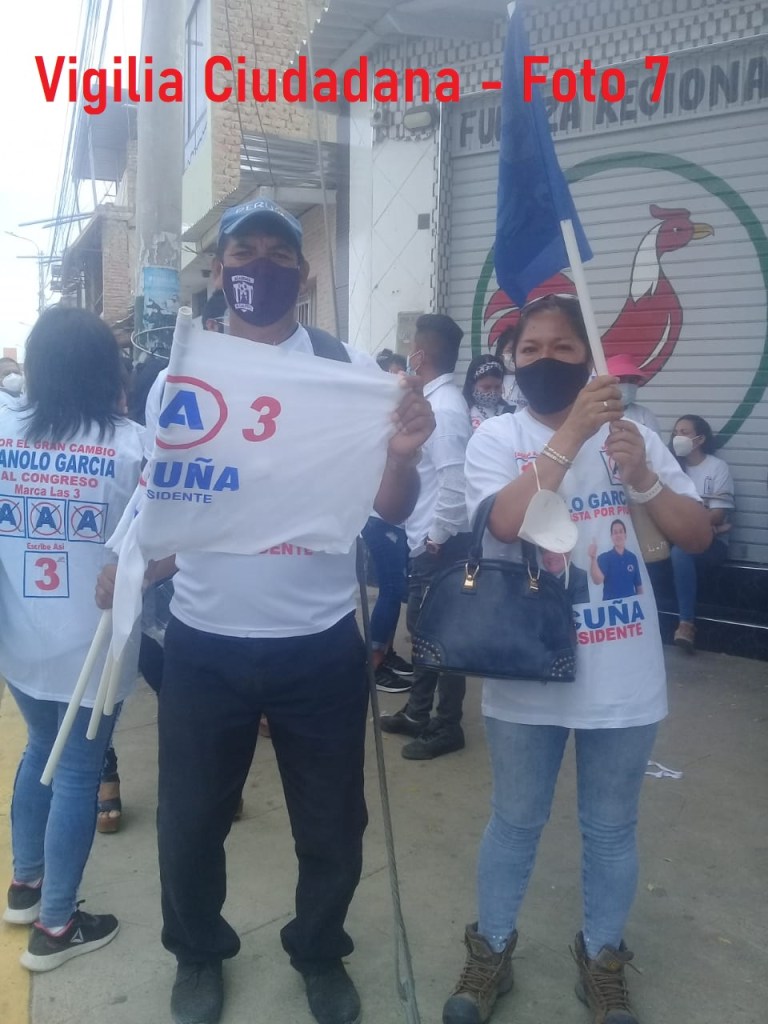 Como no podía ser de otra manera, IDELSO MANUEL GARCÍA CORREA, estuvo en primera línea acompañado de dos de sus principales asesores de campaña pagados con dinero público que su hermano administra como gobernador regional… Como se puede apreciar en las fotografías que nos enviaron de esa provincia, aparecen dichos asesores que, a la vez, son asesores del gobernador regional… Hablamos de MIGUEL RAMIRO MALDONADO ROMERO y SEGUNDO LUCIANO VALDIVIEZ RODRÍGUEZ, además de hace las veces de mandadero o conserje LUIS ENRIQUE OTOYA HEREDIA, ya reportado en anteriores ocasiones…