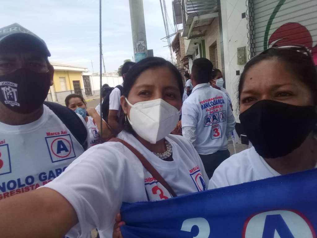 KARLA PATRICIA FLORES PORRAS, empleada de la denominada CASA SOLIDARIA y cuando tendría que haber estado atendiendo a los enfermos por el COVID, tuvo autorización para asistir a las actividades proselitista de MANUEL GARCÍA CORREA, hermano del gobernador regional… Aquí se le ve en plena faena proselitista