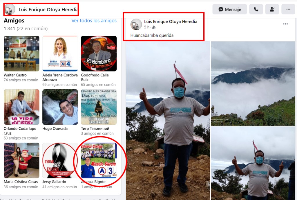 El otro operador pagado por el GR PIURA, hace las veces de asistente de campaña de MANUEL GARCÍA CORREA, se llama LUIS ENRIQUE OTOYA HEREDIA a quien vemos en foto de sus redes sociales, feliz de ir a Huancabamba a apoyar a su candidato a cambio de un estipendio de S/ 1,500 mensuales…