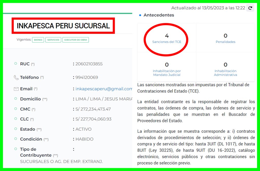 Sanciones que el Tribunal de Contrataciones del Estado aplicó a InkapESCA Sucursal Perú