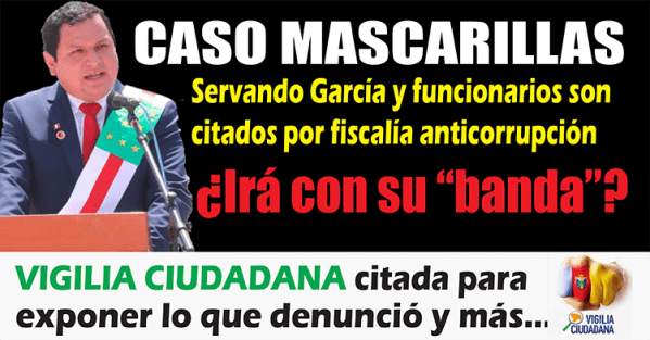 El pasado 15 de abril, “VIGILIA CIUDADANA” denunció el manejo irregular de los recursos públicos en la compra de 100 mil mascarillas que hizo el GR PIURA con los colores del movimiento de SERVANDO GARCÍA... La compra por 260 mil soles fue cuestionada no solo por el proselitismo político en que el gobernador regional incurría en plena pandemia (Ver nota aquí) sino... Leer más →