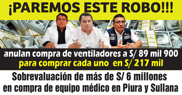 Robar el dinero público es un delito muy grave, pero robarlo en plena pandemia del COVID-19 aprovechando la emergencia para comprar equipo médico y mientras Piura enfrenta un peligroso crecimiento de infectados y sigue sumando muertos; equivale a intentar convertirse en millonario, matando a sus hermanos y a su propia madre para poder robarles, lo que sin duda... Leer más →