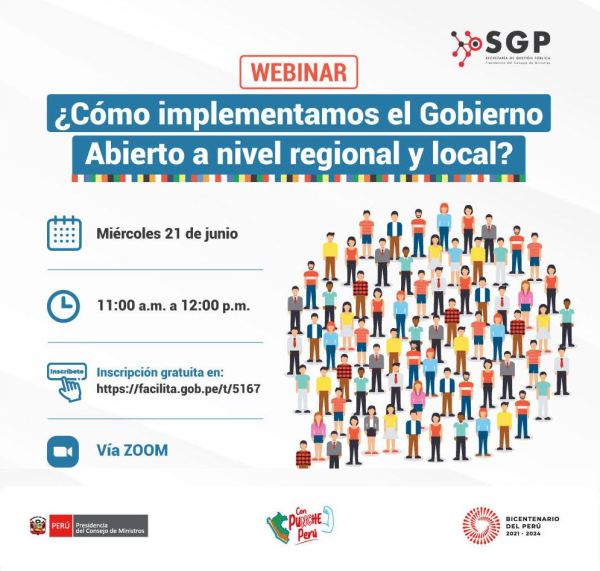 Participa de este Webinar a realizarse a través de la plataforma Zoom este miércoles 21 de junio a las 11:00 am. Al respecto se explorarán los mecanismos de implementación de los principios de Gobierno Abierto a nivel regional y local. Para ello se contará con la intervención de expertos en la temática. Para inscribirse, por... Leer más →